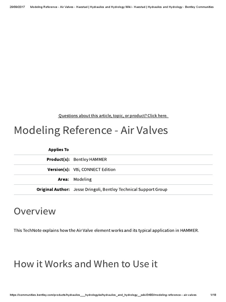 HAMMER Modeling Reference Air Valves Haestad Hydraulics and Hydrology Wiki Haestad